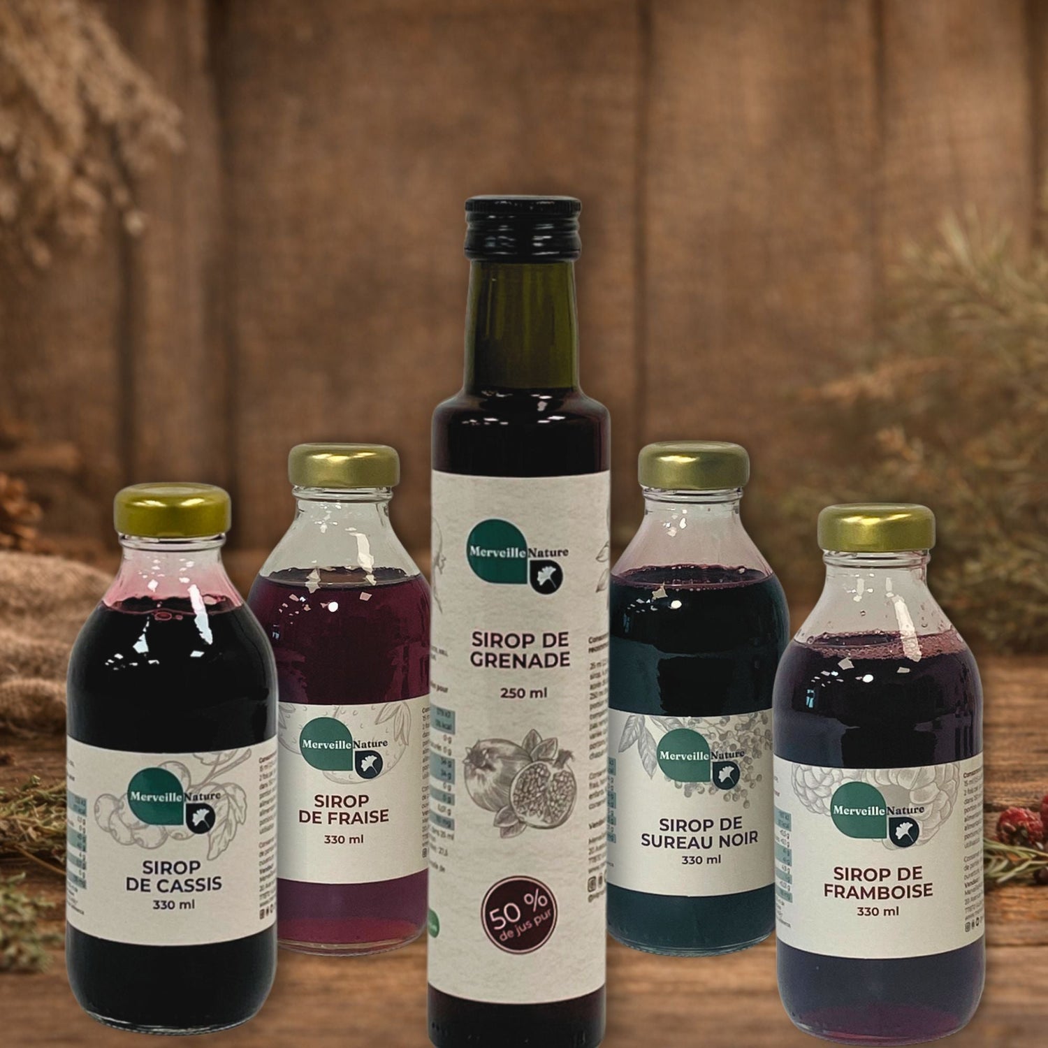 Our syrups are made from real fruit juice, never from reconstituted concentrates. Free from preservatives, artificial colors, synthetic flavors, and glucose-fructose syrup, they are 100% natural and authentic.